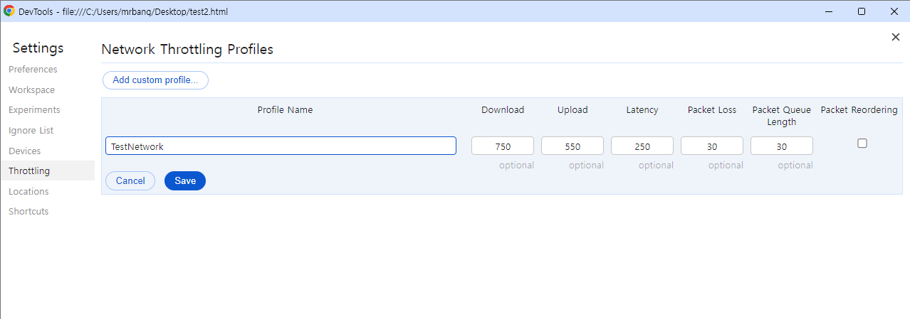 🌱다운로드, 업로드, 패킷 로스등 여러가지 설정을 지정하여 네트워크 속도를 제한할수 있다.