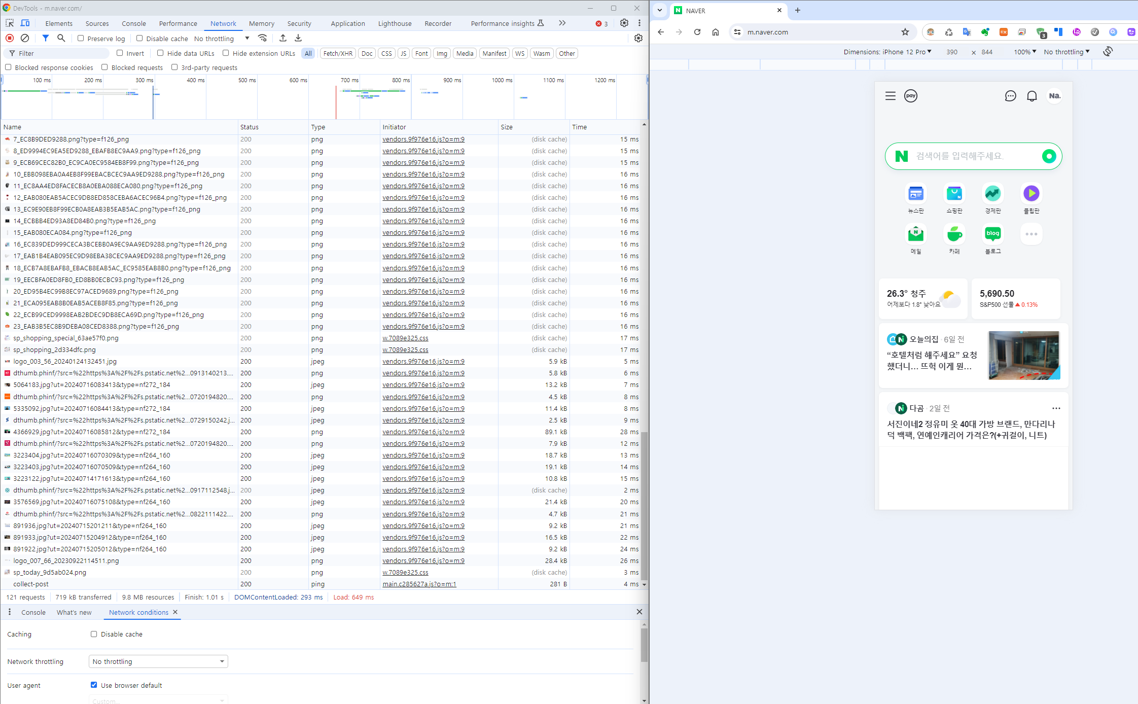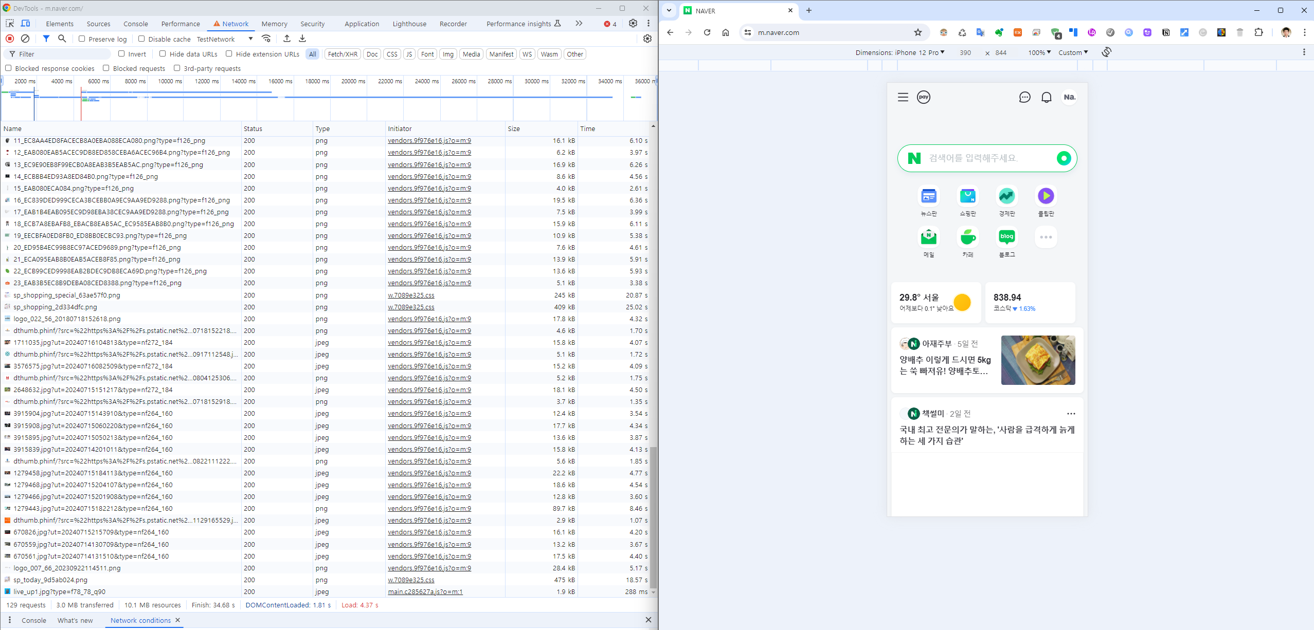 이에 개발자도구에서는 인터넷 속도를 편집하거나 기본 제공되는 3G환경을 통해 느린 통신망일때 호출되는 여러 페이지에 대한 리펙도링을 도와 줄수 있다.