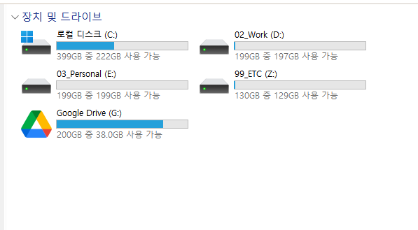 NAS등 여러가지 저장소가 있겠지만 Google앱에 대한 황용도가 높아 GoogleDrive를 사용중에 있습니다.