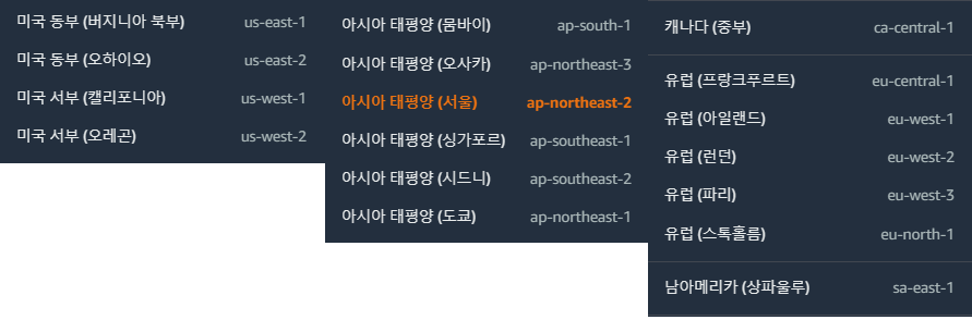 - ap-northeast-1(아시아 태평양 - 도쿄)
