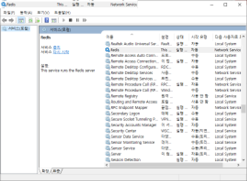 - Win키 + R -> services.msc ( 윈도우 등록된 서비스 목록 출력 )