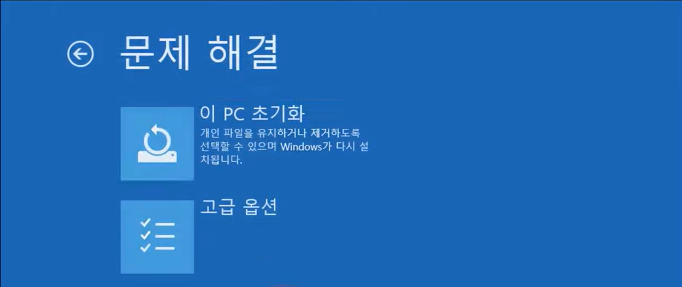 2. 안전모드가 활성화 되면 옵션에서 문제해결을 선택한다.