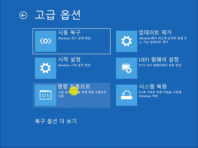 잠금 화면에서 shift + 재시작을 누르고 대기하면 안전모드로 이동된다.