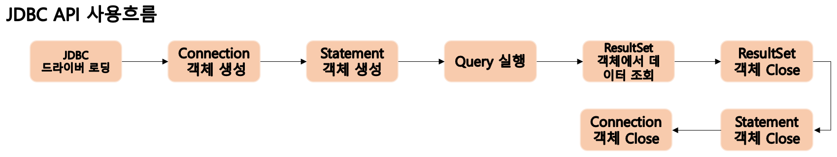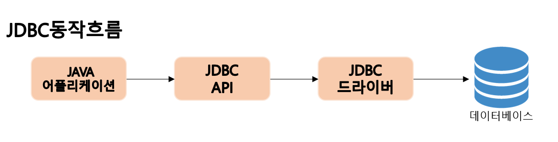- JDBC란 Java어플리케이션내에 JDBC API를 통한 DB접근 구조 (JDBC드라이버 로딩 후 DB연결)