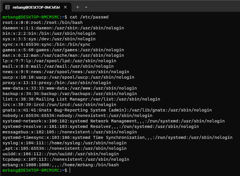📚계정 존재여부 ( cat /etc/passwd | grep [계정] )