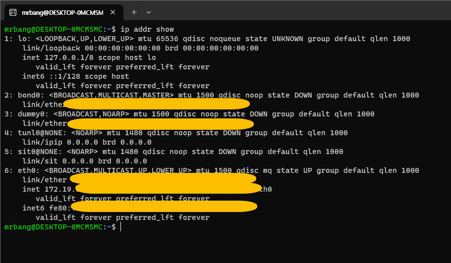 Ref. https://bono915.tistory.com/entry/Linux-%EB%A6%AC%EB%88%85%EC%8A%A4-IP-%ED%99%95%EC%9D%B8-%EB%B0%A9%EB%B2%95