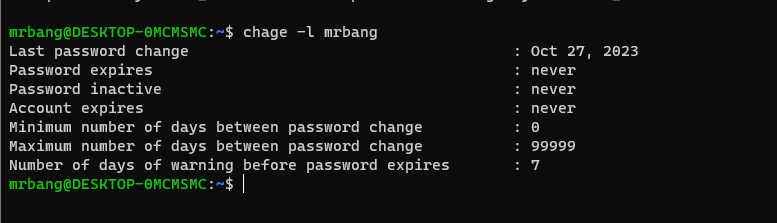 📚계정에 대한 PW정책 확인 ( chage -l [계정명] )