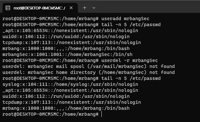 📚 User 계정 삭제 (userdel -r [계정명]) (userdel [계정명] - 계정만 삭제하고 폴더는존재)