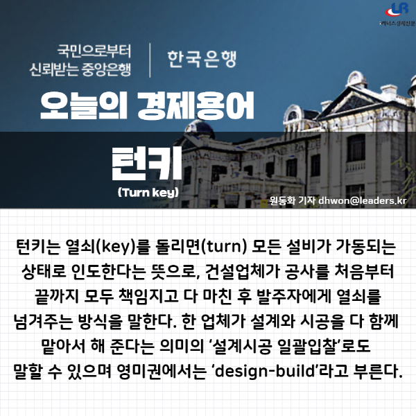 업무를 진행 하다보면 계약에 대한 턴키 턴키 라는 말을 들어본적이 있다. 처음에는 무슨 소리인지 몰라 듣고 있는데 추가 개발이 안된다고 한다는 말을 듣고 계약방식을 말하는것이라고 생각이 들어 찾아보게 되었습니다.